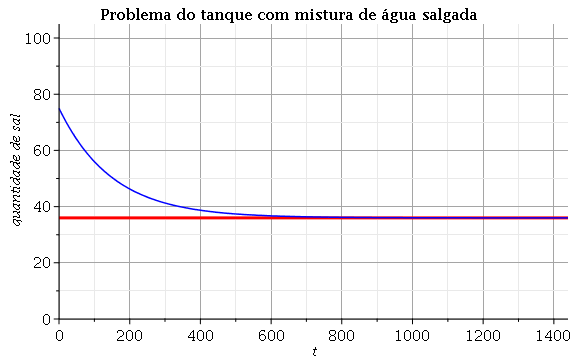 vai para o infinito, pois o termo dependente do tempo decai exponencialmente rápido para zero. Note que em menos de 1 segundo a corrente quase se estabiliza, como podemos ver pelo gráfico da corrente (em amperes) versus tempo (em segundos). Isto é consequência do fato da indutância ser uma constante positiva. O termo dependente do tempo é chamado transiente e o termo constante (nesta solução) de estacionário.